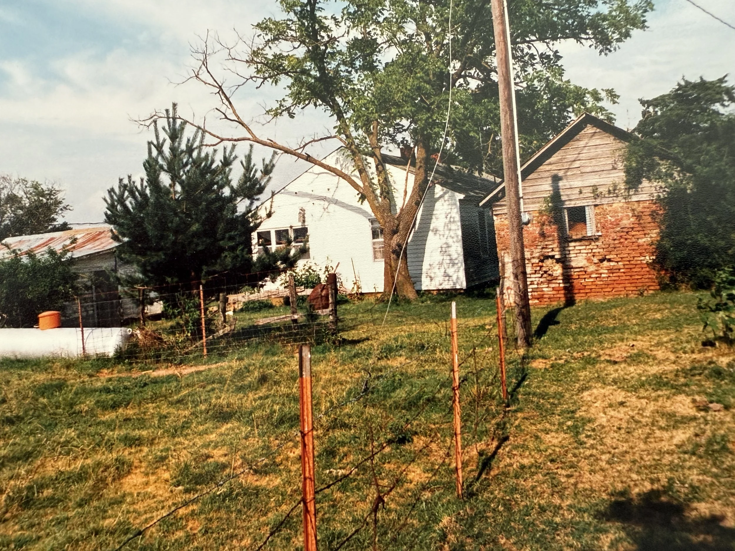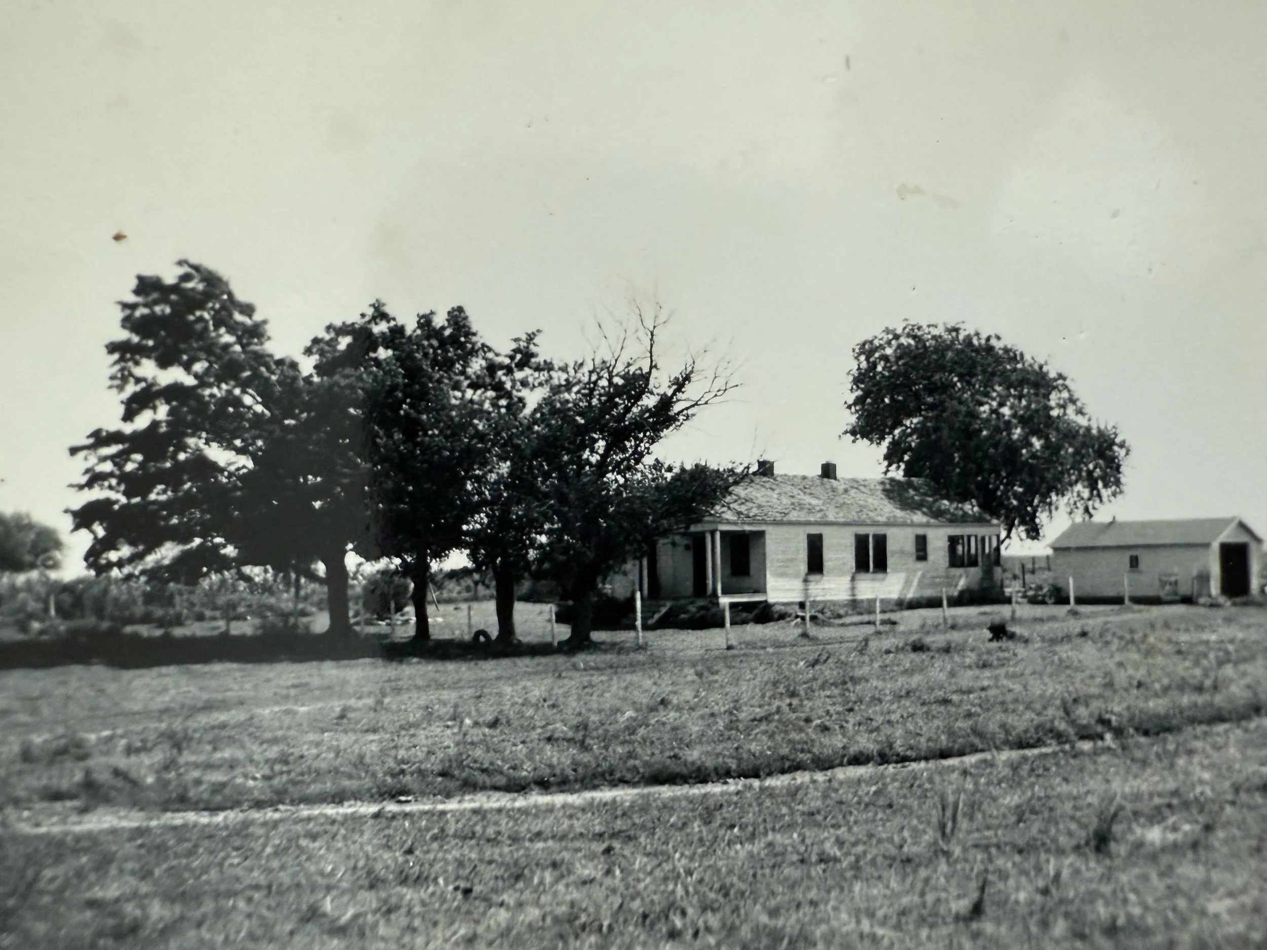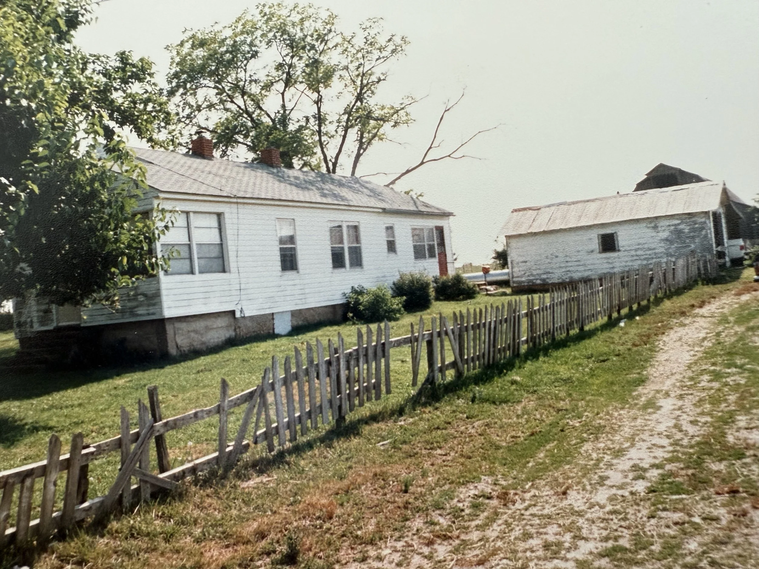 This is an early picture of Jeff’s childhood home, but Jeff explains in the audio recording that right before he was to be born, the structure burned and he was actually born in the smokehouse, the red brick structure in the picture below on the right. Soon after, the home above was built.
